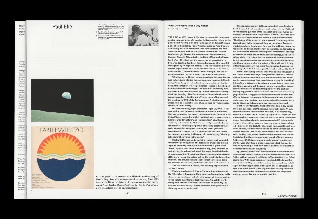 Volume 2 of the Emergence Magazine print edition speaks, across 400 pages, to the multiple crises and opportunities unfolding around us: plague, extinctions, and loneliness grip us ever tighter even as they affirm our connection with the living world. The artistic direction of the magazine embraces both an activist voice, a poetic aesthetic and its literary audience.