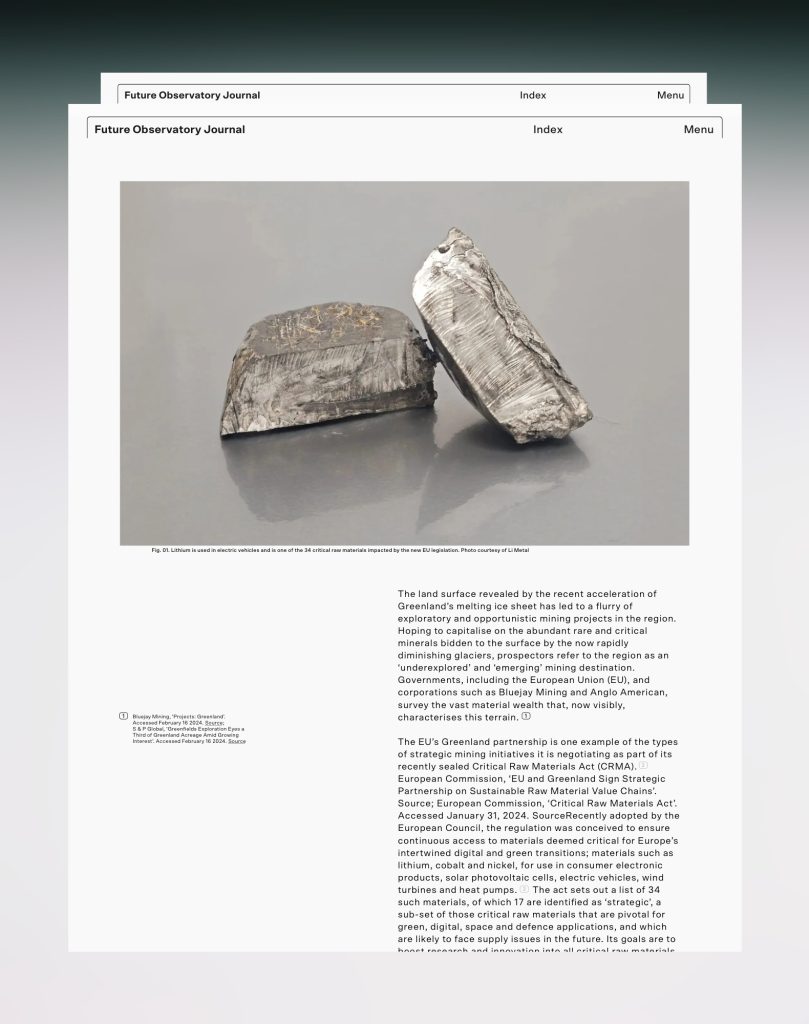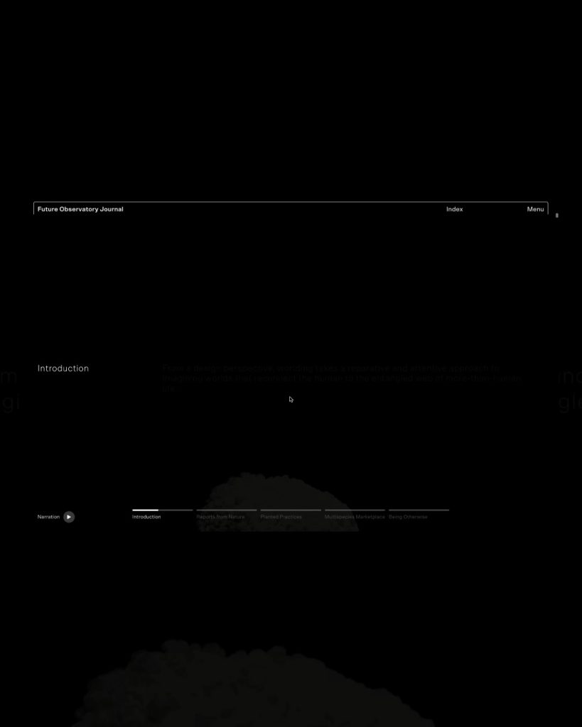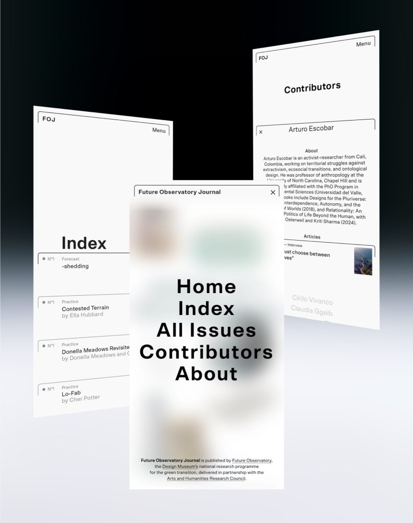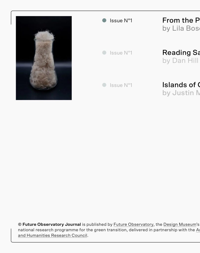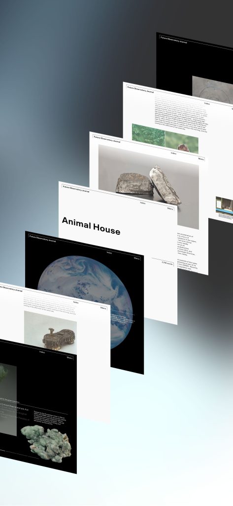 Future Observatory Journal is a new digital publication that will research and explore design, ecology and futures within different editorial formats. Published biannually, each issue delves into a theme at the intersection of design, ecology, and futures.