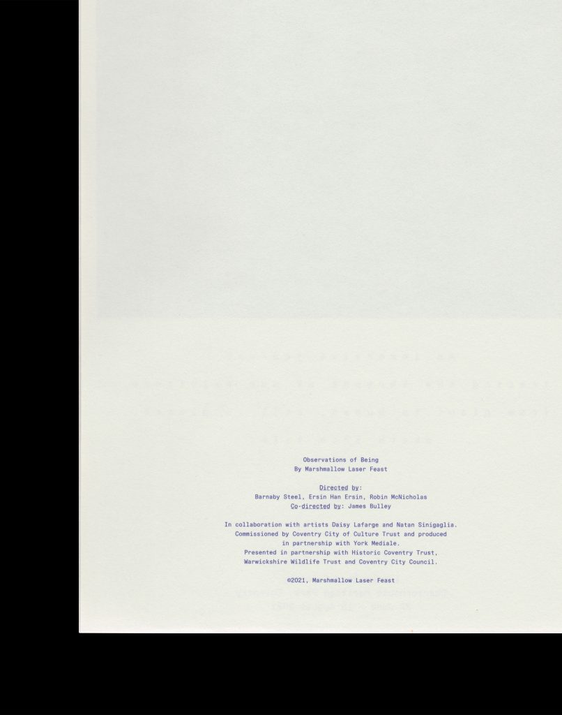 ‘Observations on Being’ brings together a series of thought-provoking and immersive audio visual art installations and soundscapes inviting audiences to cross the threshold and follow an expansive journey through the invisible natural world.