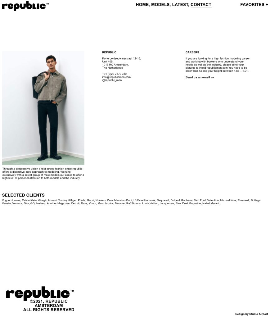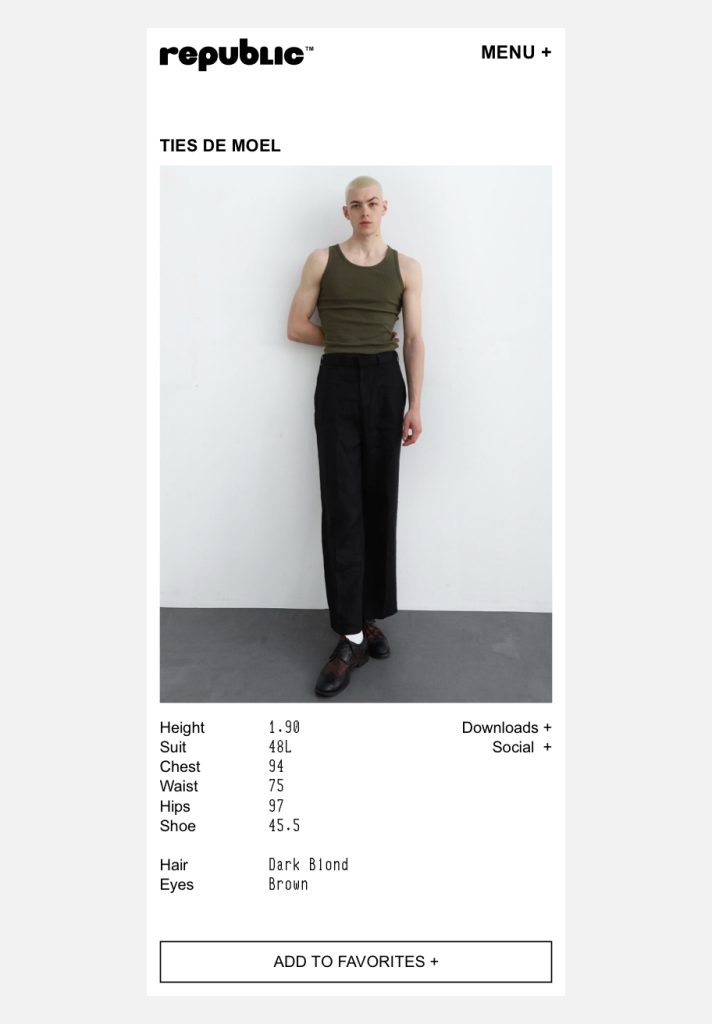With a progressive vision and a strong fashion angle Amsterdam based Republic Men offers a distinctive approach to modeling with a select group of male models.
