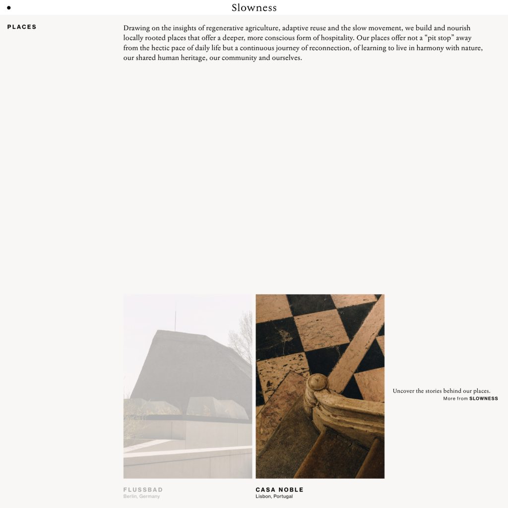 Slowness is where the ideas and stories that inhabit the world of Slow come alive. Slow has been quietly unfolding with hospitality places in Portugal, Ibiza, Mexico, Berlin. Taking a localized conscientious approach to hospitality Slowness forms a collective of likeminded creatives.